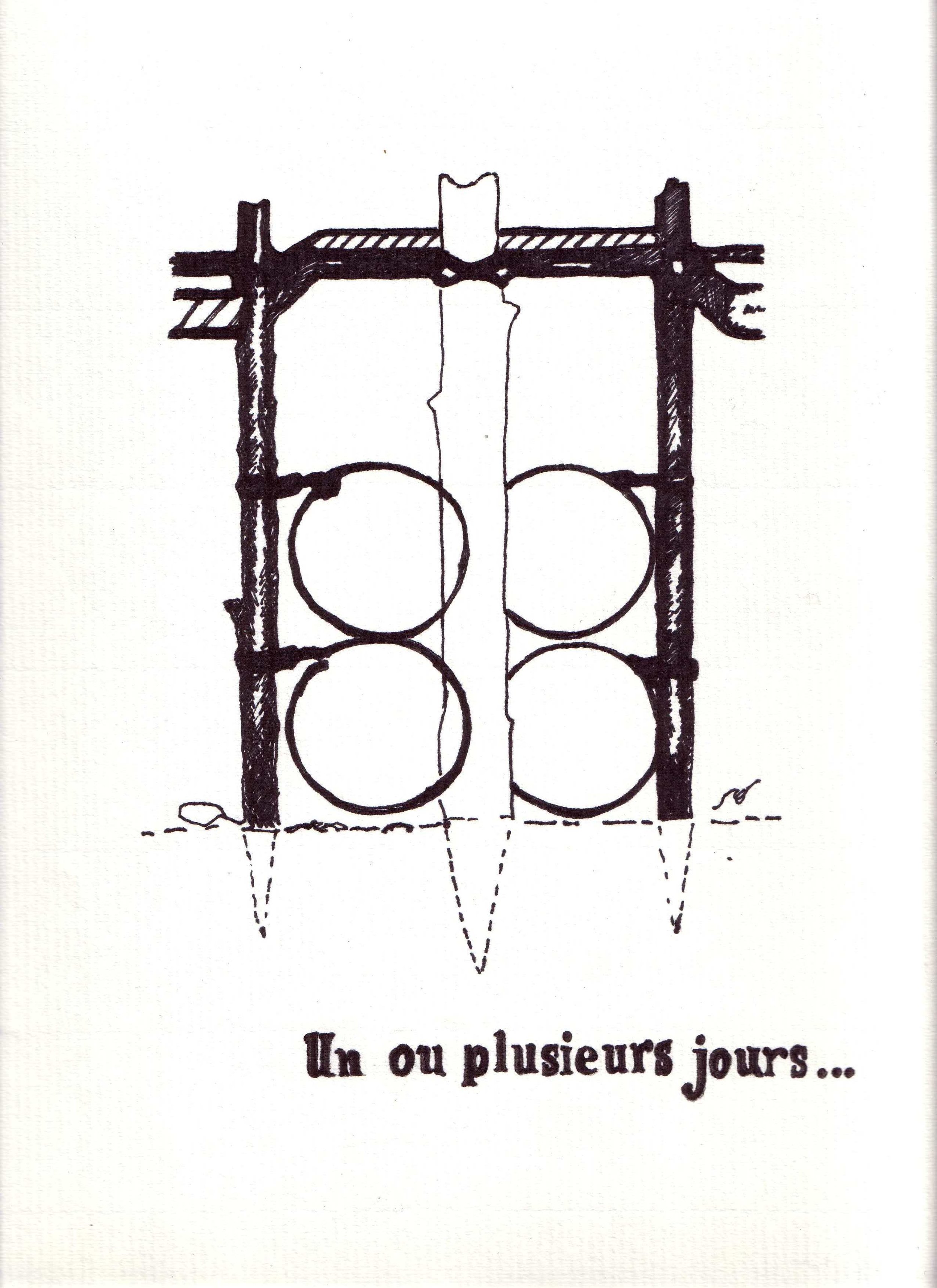 The drawings of "Un ou plusieurs loups..." are watercolors, ink, gouache and collage on Fabriano vergé Paper of 35 x 25 cm